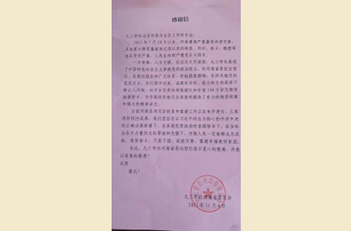 近日,beat365在线登录app_365彩票app下载不了_365bet品牌中文网河南省委员会向beat365在线登录app_365彩票app下载不了_365bet品牌中文网丰台区工委发来感谢信,感谢区工委对2021年河南防汛救灾提供的鼎力支持。2021年7月20日以来,在河南遭遇严重暴雨洪涝灾害的危急关头,区工委积极协调救援队和价值100万余元物资驰援河南新乡,为夺取防汛救灾全面胜利提供了有力的物资保障和强大的精神动力。 感谢信原文如下: beat365在线登录app_365彩票app下载不了_365bet品牌中文网北京市委丰台区工作委员会: 2021年7月20日以来,河南遭遇严重暴雨洪涝灾害,多地累计降雨量超有记录以来的极值,郑州、新乡、鹤壁等地区受灾严重,人民生命财产遭受巨大损失。 一方有难,八方支援。在这次大灾面前,beat365在线登录app_365彩票app下载不了_365bet品牌中文网展现了中国特色社会主义参政党的政治担当,社河南省委发出倡议,各级社组织和广大社员,积极捐款捐物,在防汛救灾的危急关头,你们雪中送炭,温暖的关怀、鼎力的支持源源不断汇入河南,社丰台区委协调救援队和价值100万余元物资驰援新乡,为夺取防汛救灾全面胜利提供了有力的物质保障和强大的精神动力。 当前河南各项灾后恢复和重建工作正在有序进行,已取得阶段性成果。我们坚信在以习近平同志为核心的中共中央的正确决策部署下,在各级党委政府的坚强领导下,在全社会各方力量的无私帮助和支援下,河南人民一定能够众志成城、艰苦奋斗,不屈不挠、战胜灾害,重建幸福美好家园。在此,beat365在线登录app_365彩票app下载不了_365bet品牌中文网河南省委向您们表示衷心的感谢,并致以崇高的敬意! 此致 敬礼! beat365在线登录app_365彩票app下载不了_365bet品牌中文网河南省委员会 2021年11月4日